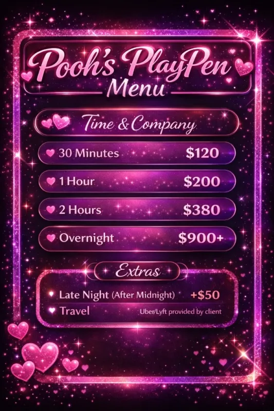 Pooh’s PlayPen 💕 Welcome to my little corner of fun. I’m a beautiful, Chubby BBW with gorgeous curves, a warm personality, and an energy that’s easy to enjoy. I love meeting respectful gentlemen who appreciate a woman that is both sweet and confident. Expect a friendly, relaxed atmosphere, good conversation, and quality time with someone who enjoys making people feel comfortable. ✨ Real photos ✨ Clean & discreet ✨ Drama-free environment Serious inquiries only please. snap:@poohnani25 twitter/X:@PoohsPlayPen0